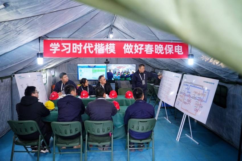 翠屏供电公司现场指挥部组织各点位负责人集中研讨,复盘保电方案、熟悉关键环节,以严细实作风守护供电安全。倪昶供图